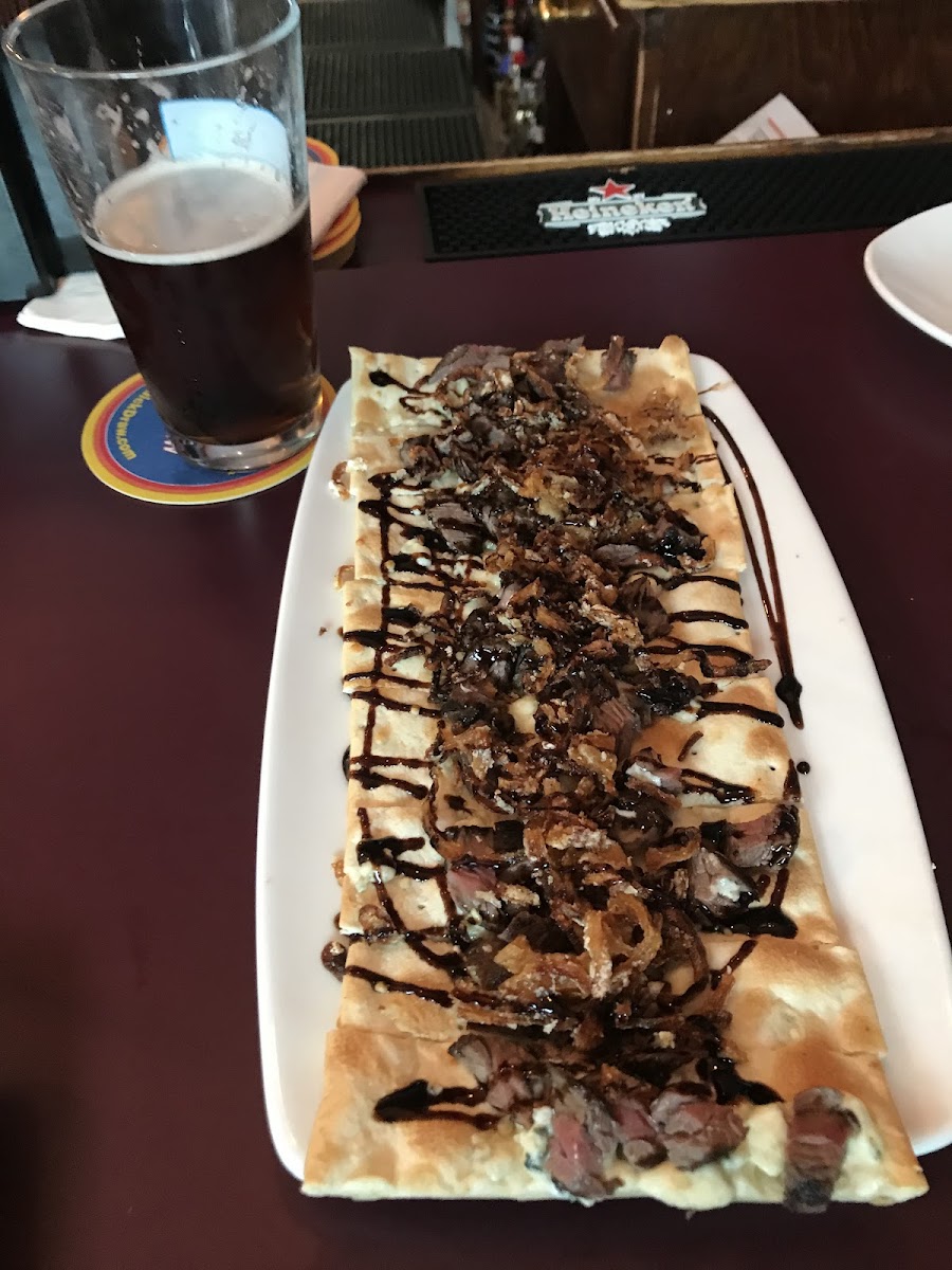 Cool bar. Cold beer. Tasty burgers. Bartender was friendly I think he name was Laura. Met some friends and a some appetizers, burgers and beers. Some people came in to watch the Islander game. Nice crowd. Would go back. Food was all delicious. Tried the wings and the Potato skins as an app. I believe my burger was “The Mikey”